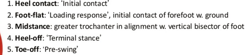 early stance, mid-stance, and late stance