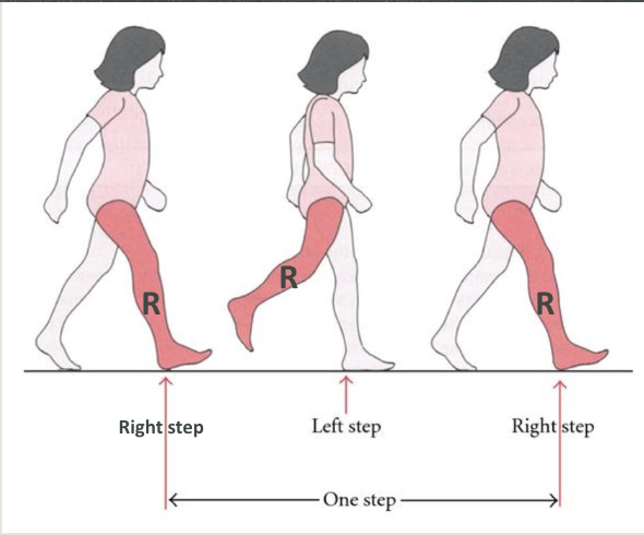 Rt step length = Lt step length (in normal gait)