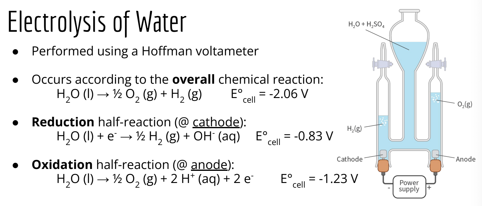 2 electrodes, usually inert/non reacting → made of graphite or platinum