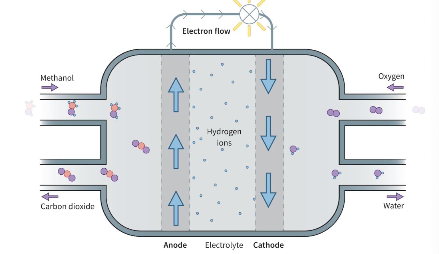 fuel cells are supplied with a continuous flow of reactant molecules, which are pumped into the cell. Unlike stand-alone batteries, fuel cells do not need to be charged over long periods. Methanol fuel cells can be refilled from a liquid methanol reservoir, which makes them convenient to use.
