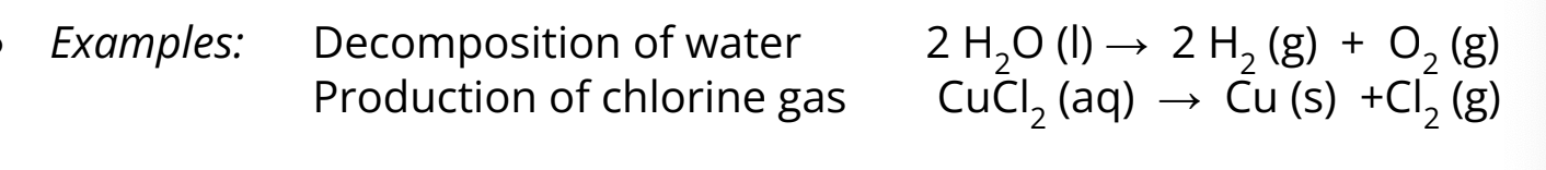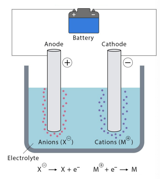 the process by which an ionic compound is broken downinto its constituent elements using electricity