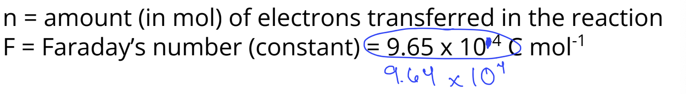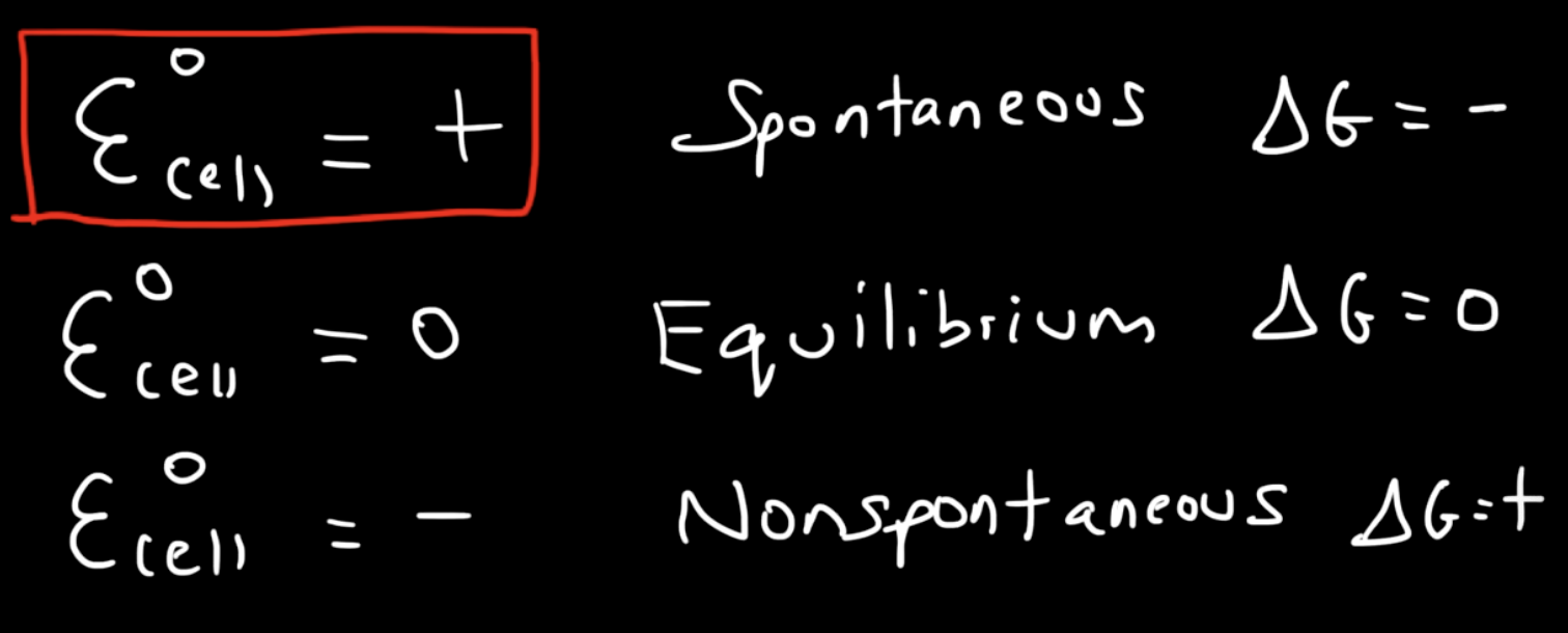 Ecell is related to ∆Gº (the standard change in gibbs free energy) by the following equation