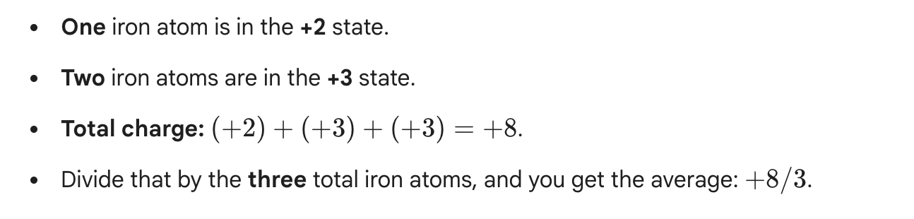 this FE with +8/3 is Fe (II, III) oxide which tells you that within this single substance some iron atoms have +2 and some have +3 charge