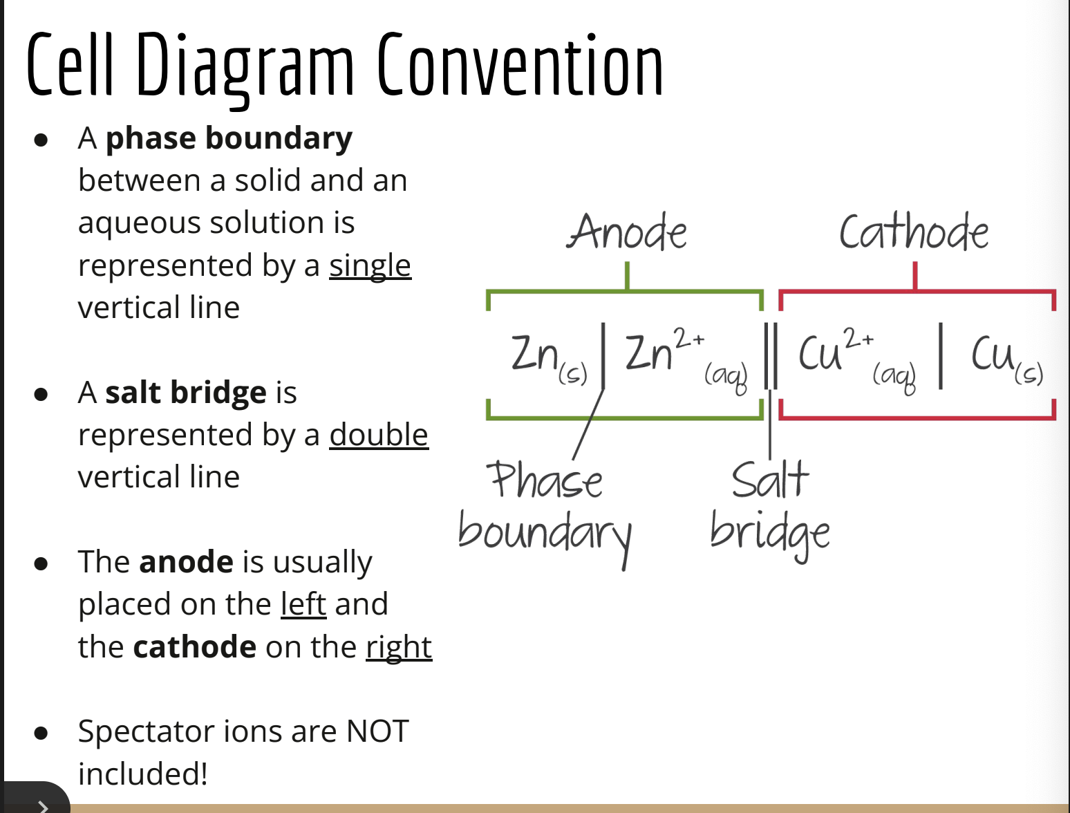 the more positive Eº wants to get eelectrons, reduced = cathode