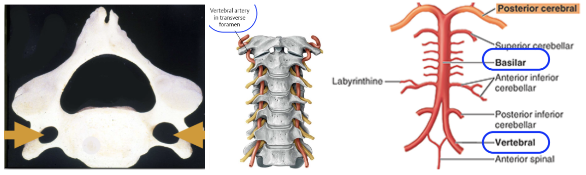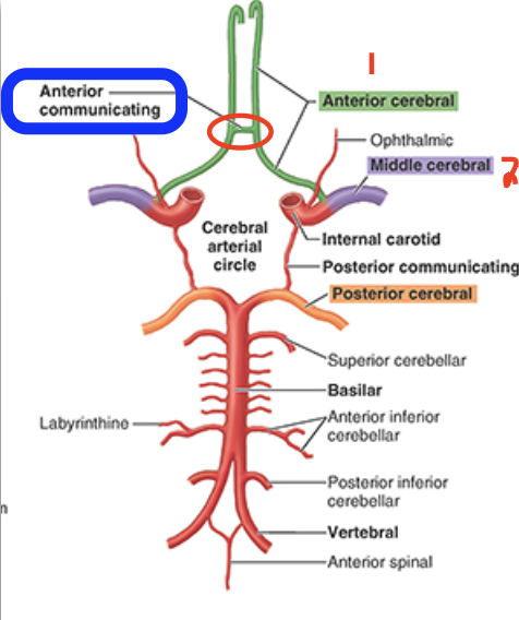 Posterior communicating arteries → allow the posterior and anterior circ (internal carotid) to form an anastomosis and complete the cerebral arterial circle (Circle of Willis)