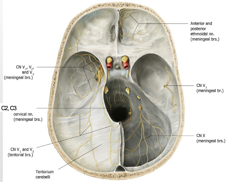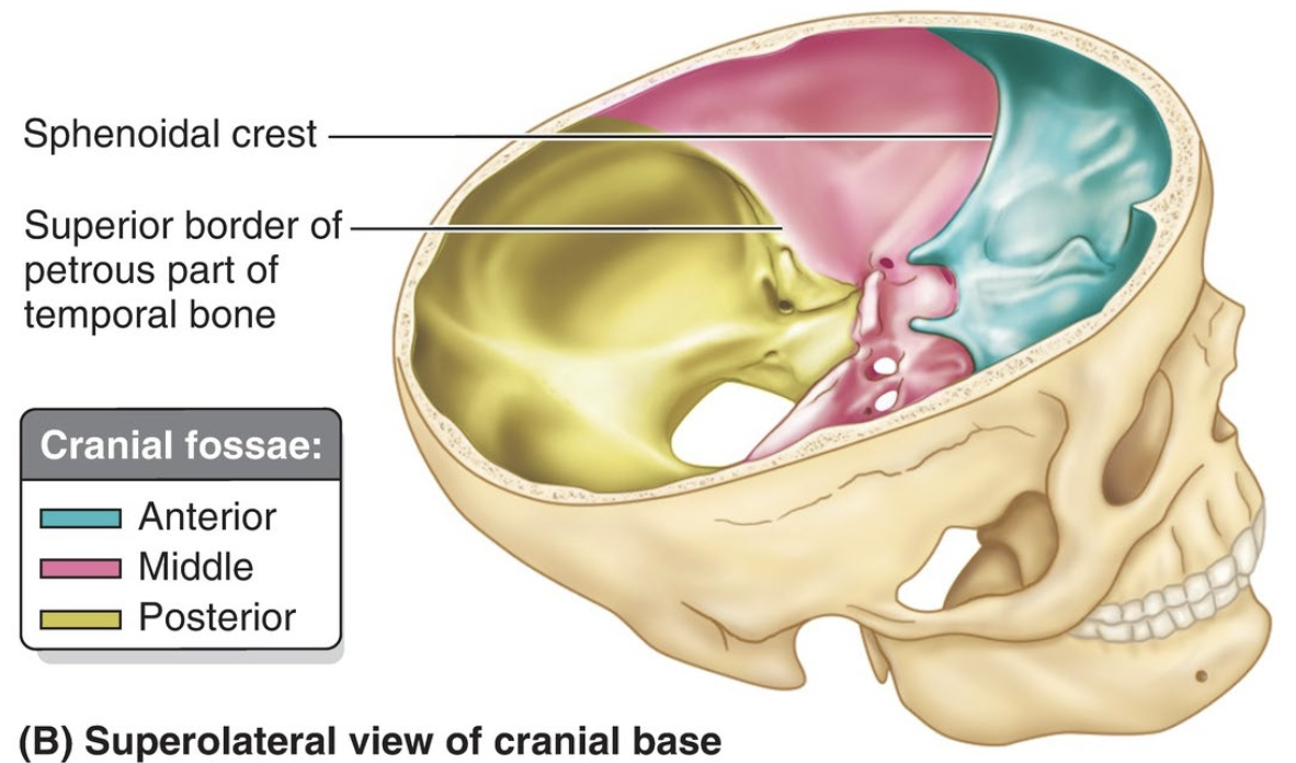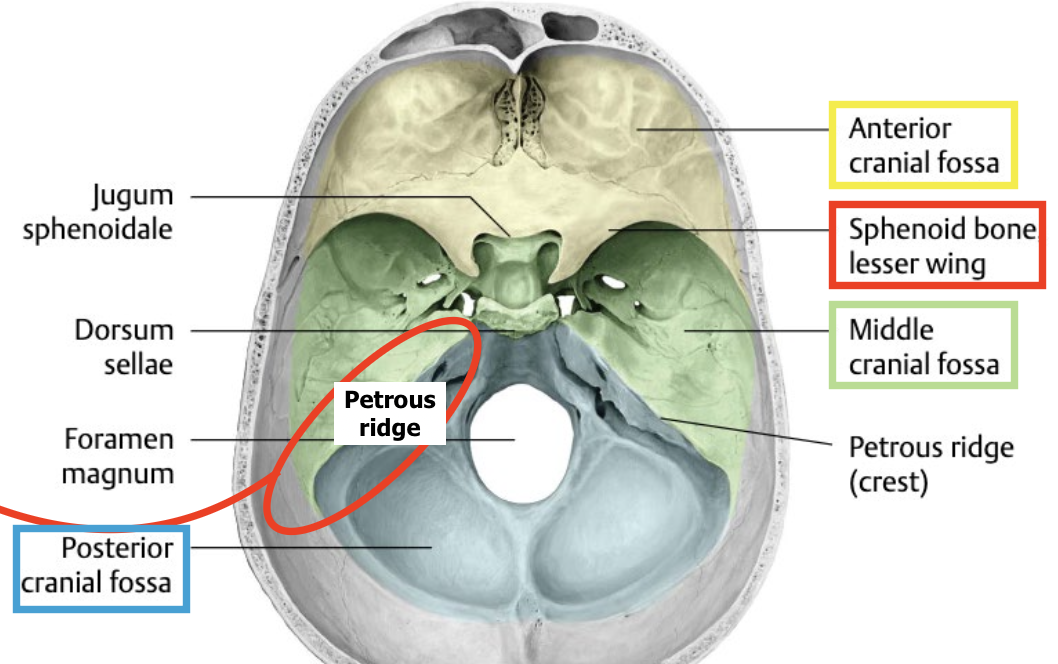 2) Temporal bone petrous ridge → separates the middle & posterior fossae