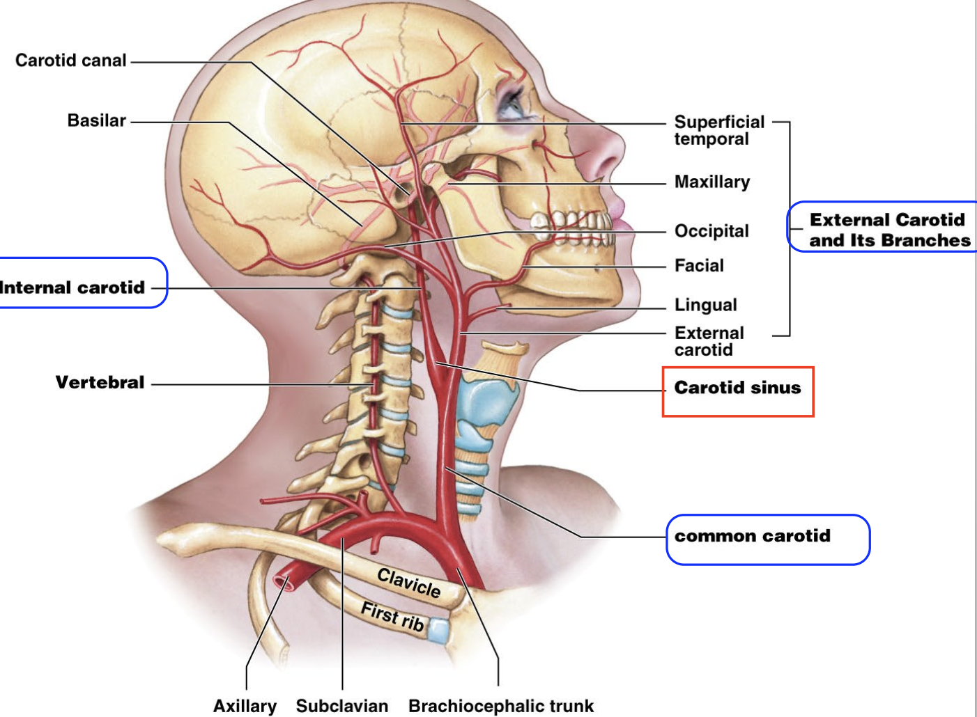Each internal carotid artery enters the cranial cavity via the carotid canal found in the temporal bone (petrous/hard part)