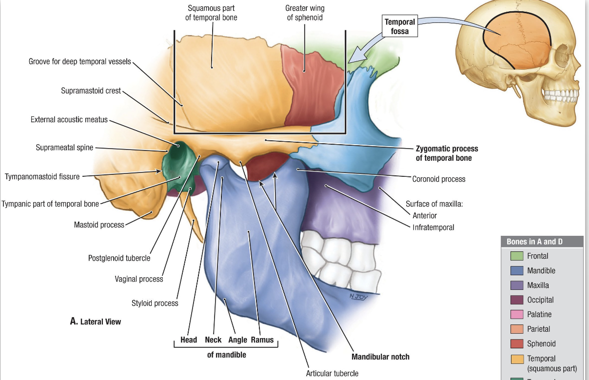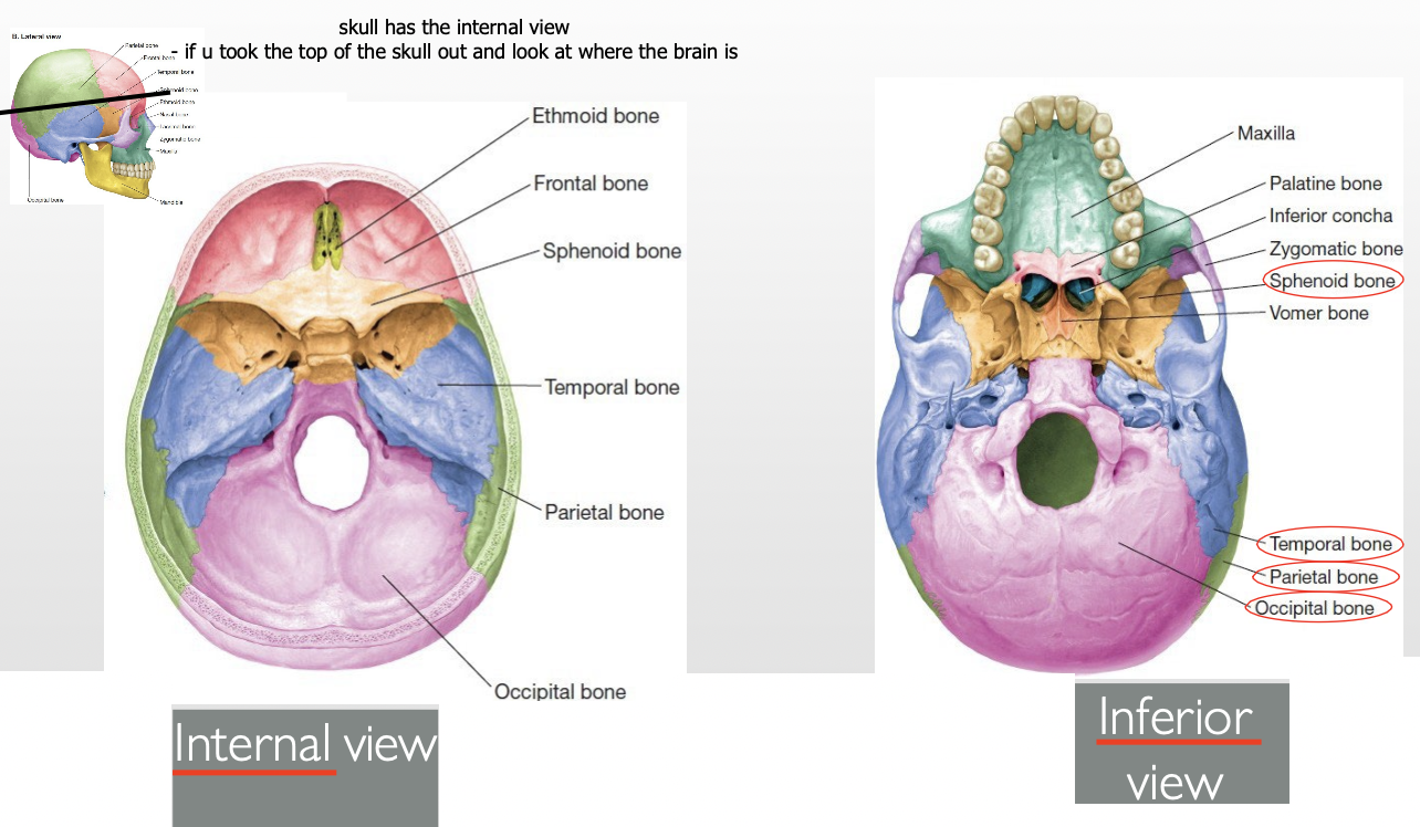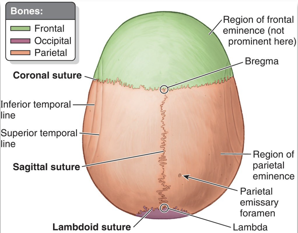 Pterion: is where the frontal, parietal, temporal, and sphenoid bones meet