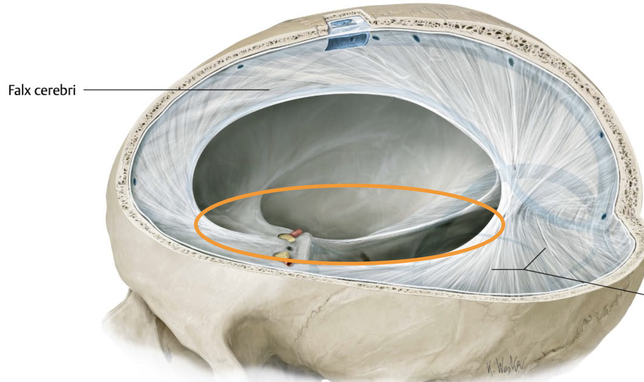 → a fold of the dura mater that separates the occipital and temporal lobes from the cerebellum and brainstem