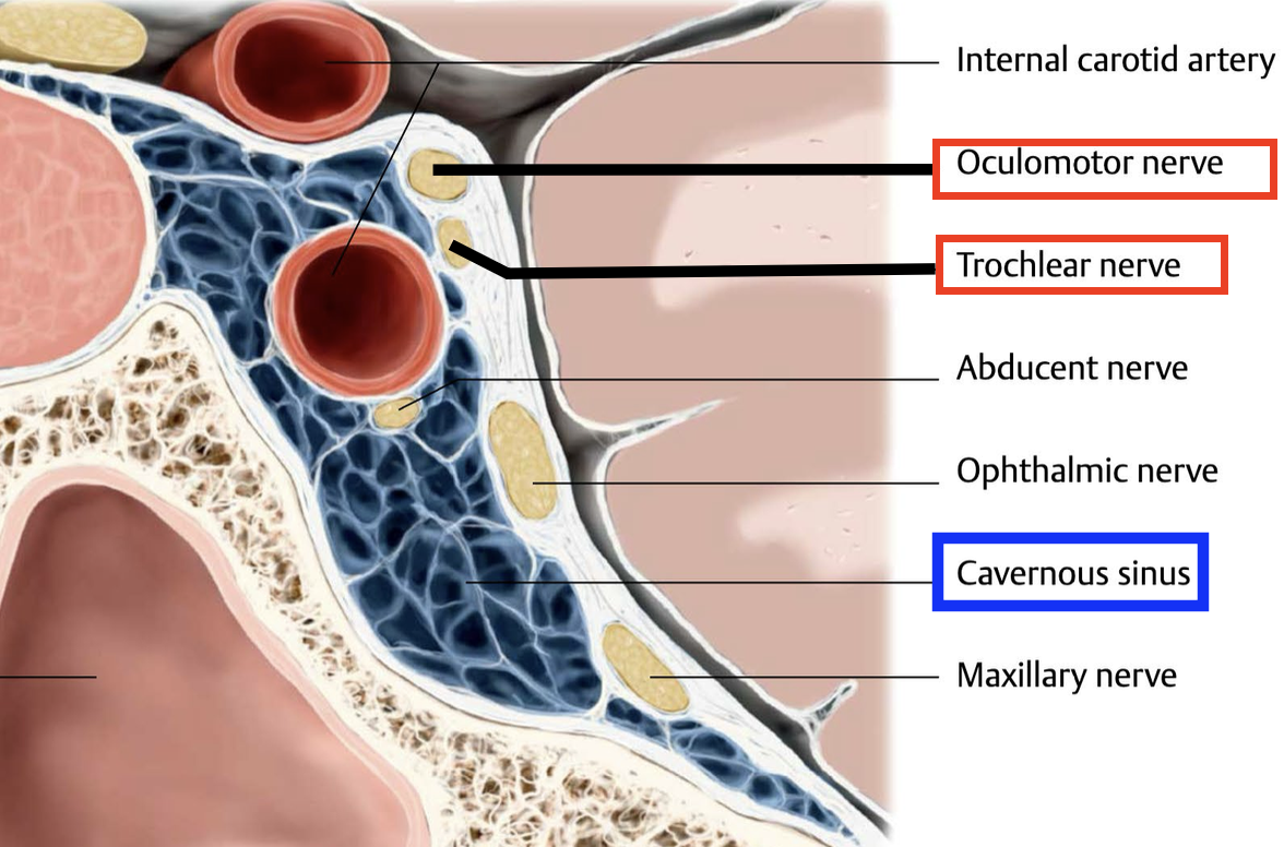 Which cranial nerves are located in close proximity to the cavernous sinus, within its lateral wall?