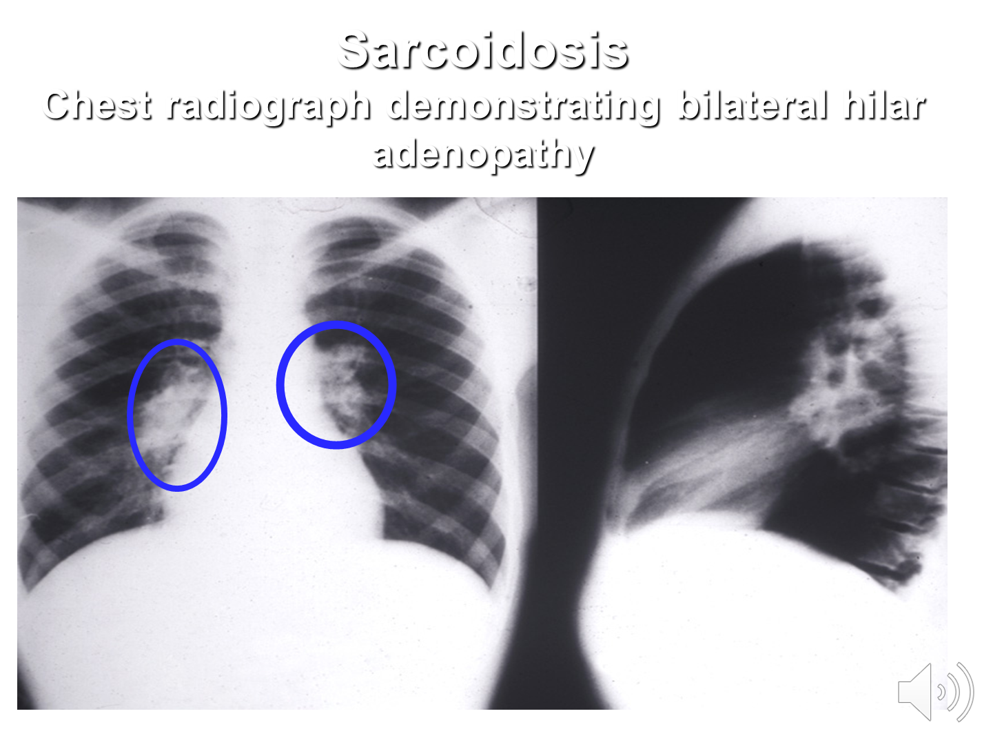 → can also have bilateral hilar adenopathy or inflammation of the hilar lymph nodes of the lung