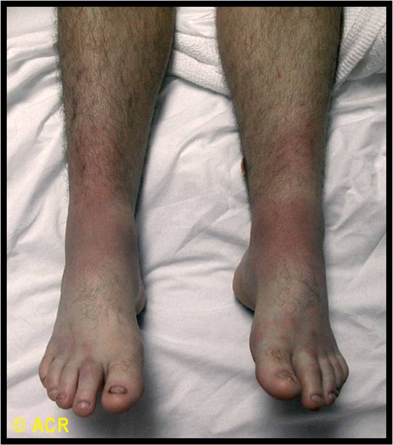 1) The initial presentation of this disease is often arthritis in the knees and ankles