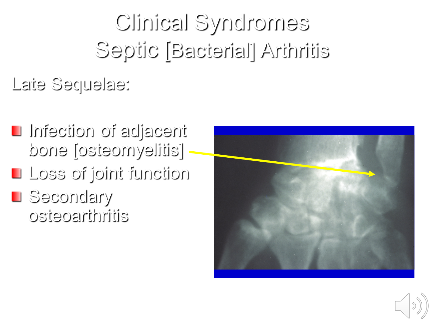 → later on you can see infection of the adjacent bone leading to secondary osteoarthritis