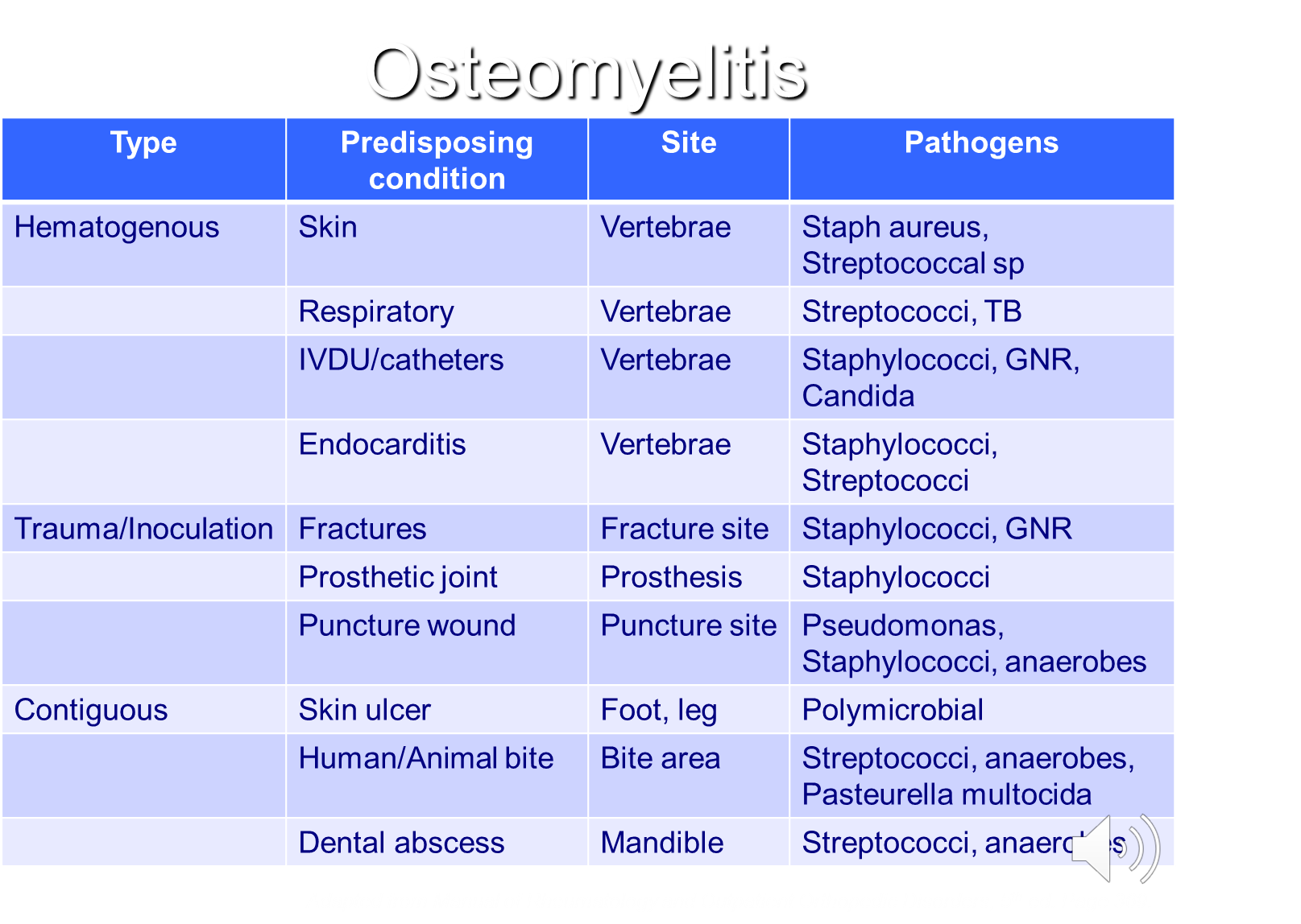 Osteomyelitis is invasion of the bone by microorganisms and are classified based on the route of infection
