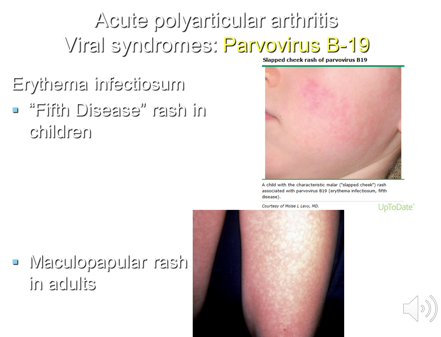 Parvovirus B-19 is a common viral infection in kids and has a varied presentation in adults and children