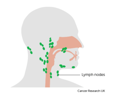 • Several groups of nodes (small bean/grape-shaped nodes) positioned around our body in areas such as neck, armpit, groin, chest