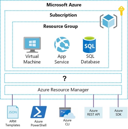 The following diagram outlines the ARM (Azure Resource Manager) architecture. Which service is the missing link between the resource group and the Azure resource manager?