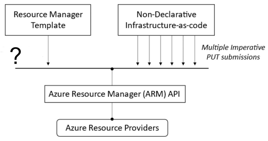 ARM templates are JSON files (a minimal, readable format for structuring data as an alternative to Extensible Markup Language) that define the configuration for resource deployment. These templates utilize a declarative syntax (as opposed to an imperative syntax), meaning that the user defines the desired outcome with all the resources they want created and any properties they wish specified in a single request. Instead of issuing multiple commands at each stage of the process to create each resource individually, and where there is no orchestration, a user must also consider dependencies and in which order commands are processed.