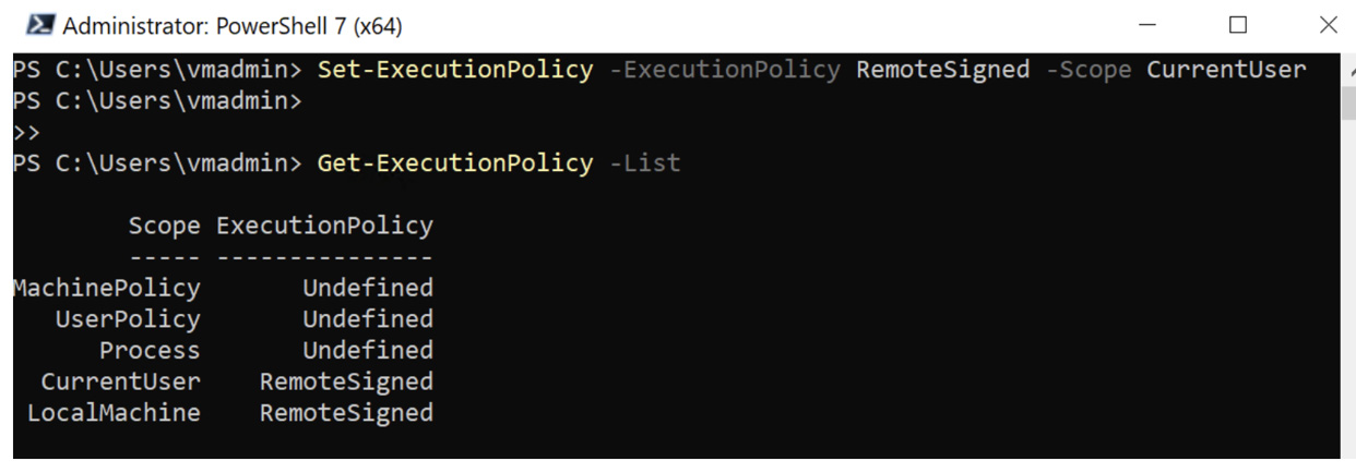 Set-ExecutionPolicy -ExecutionPolicy RemoteSigned -Scope CurrentUser