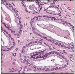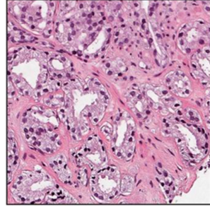 Prostate cancer is a malignant adenocarcinoma arising from the glandular epithelium of the prostate and is characterised by disorganised glandular architecture and invasive growth.