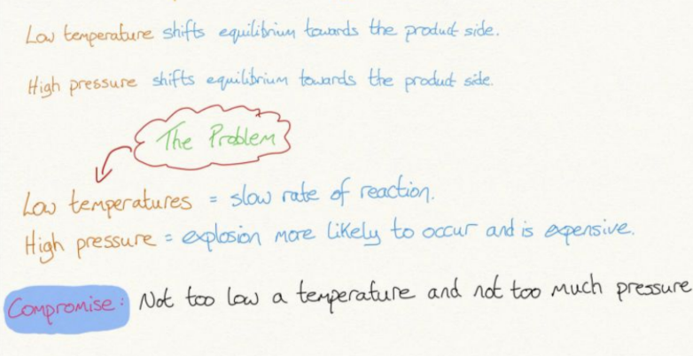 What does Le Chatelier’s Princple suggest for optimal ammonia production + what is the problem + what is the compromise?