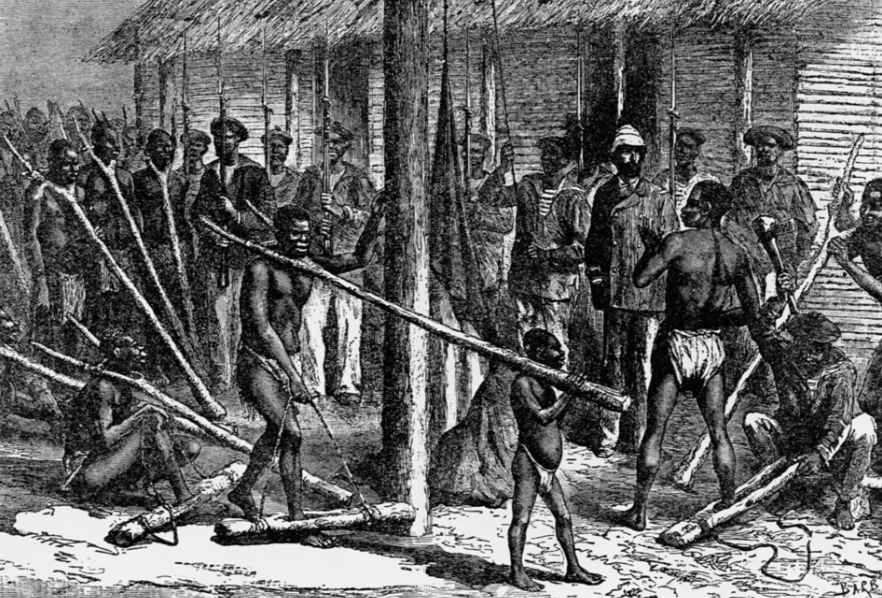 Historical Situation: The historical situation is pre-civil war because the slave market is still occurring. The imagery depicts harsh conditions for blacks of all ages, as they are wearing spears around their necks, entrapping them.