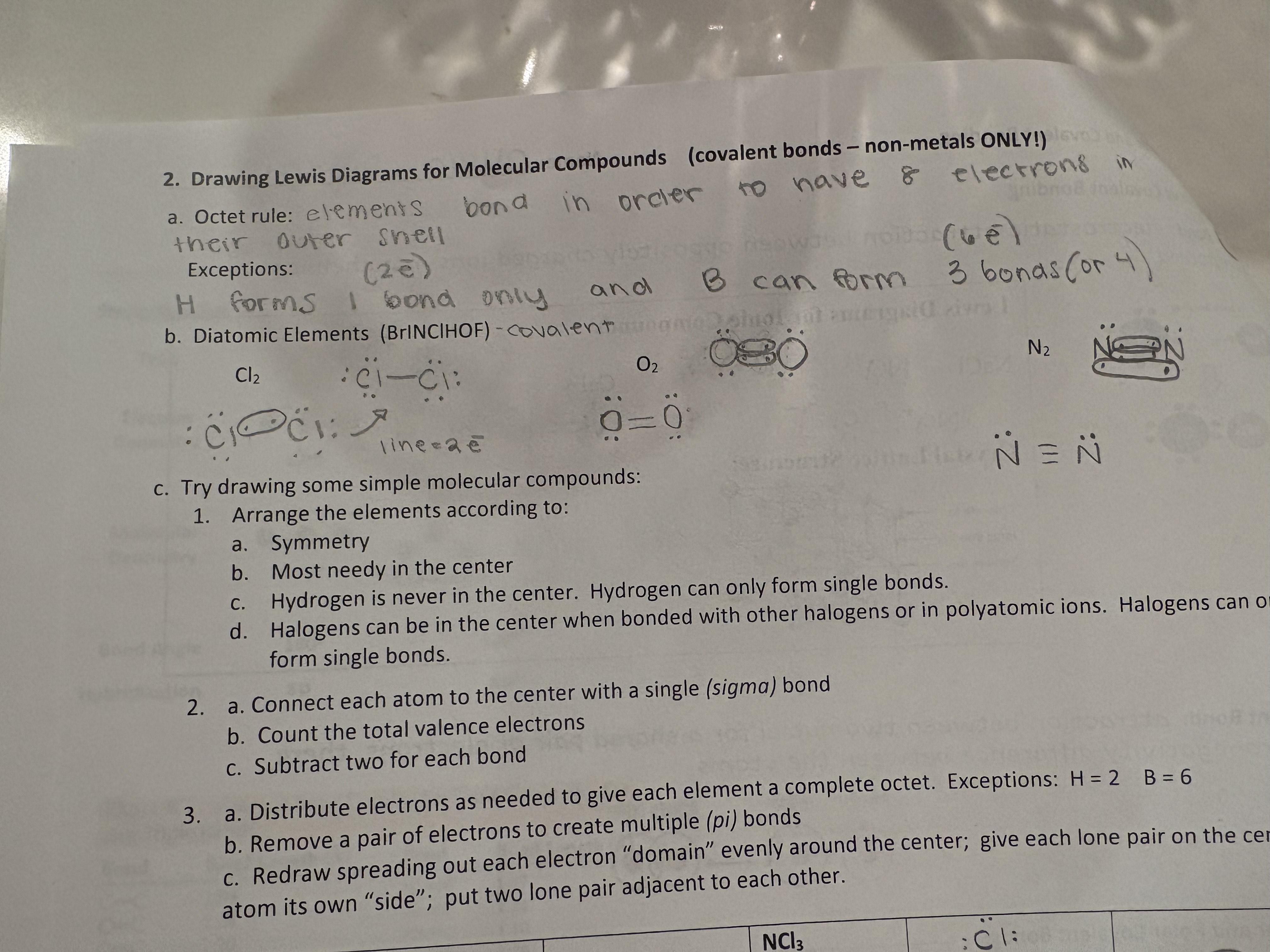 Elements bond in order to have 8 electrons in their router shell: NONMETAL ONLY