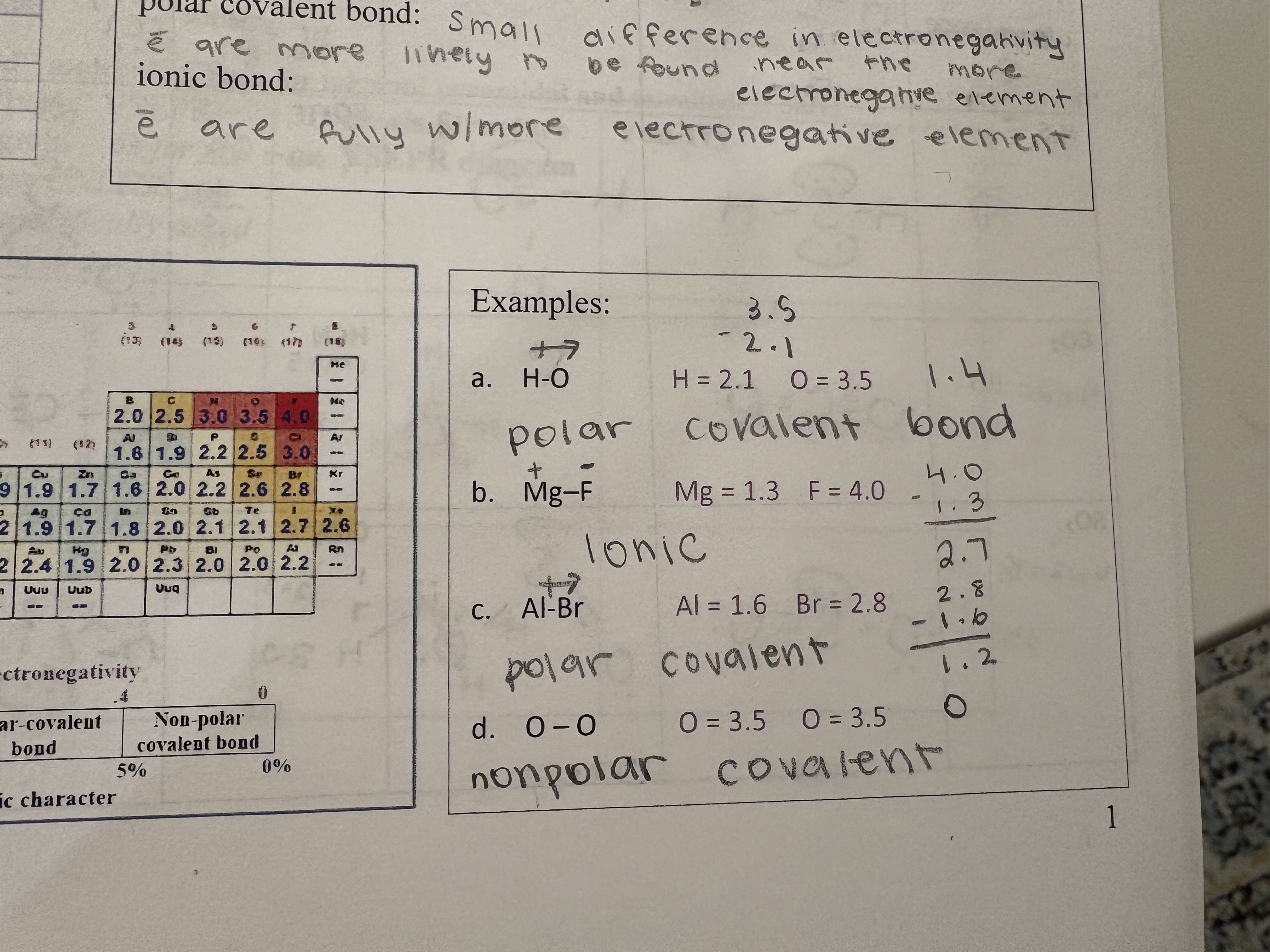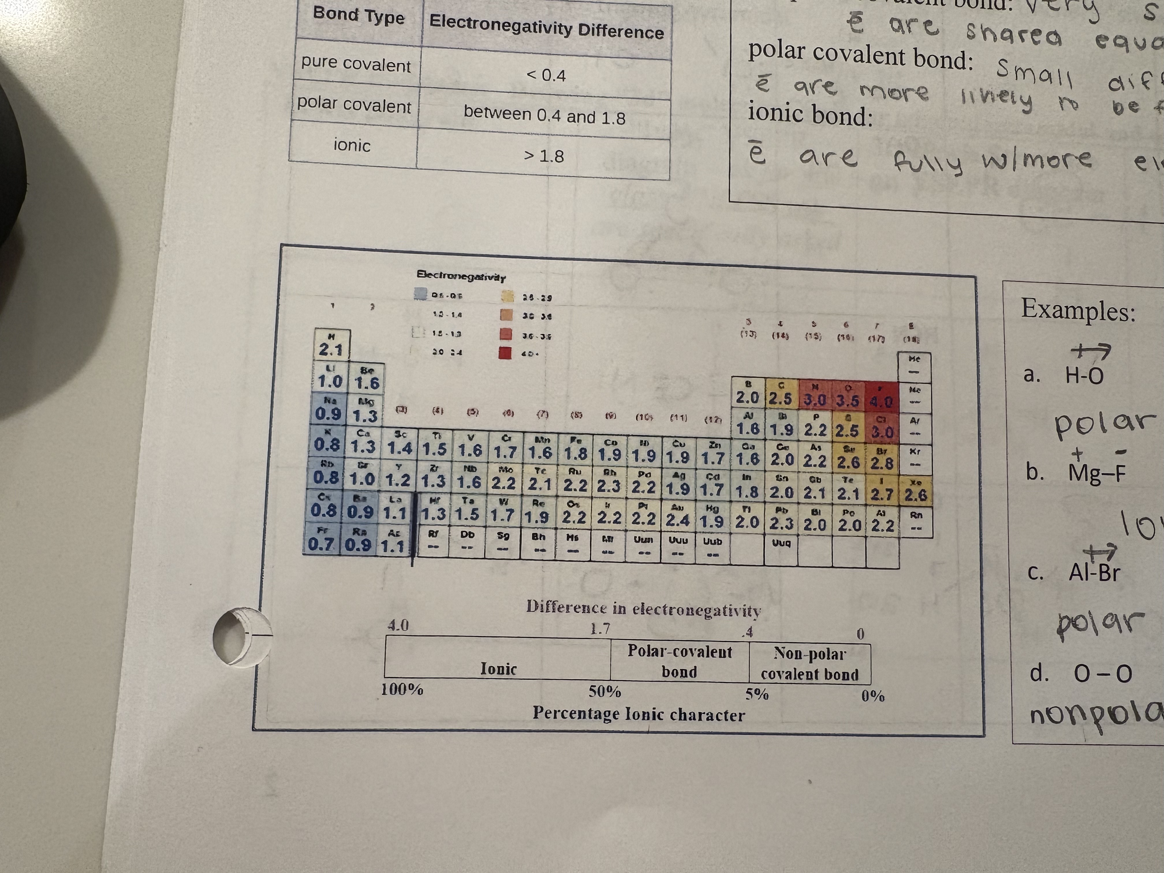 Nonpolar covalent bond/pure covalent; Electronegativity difference