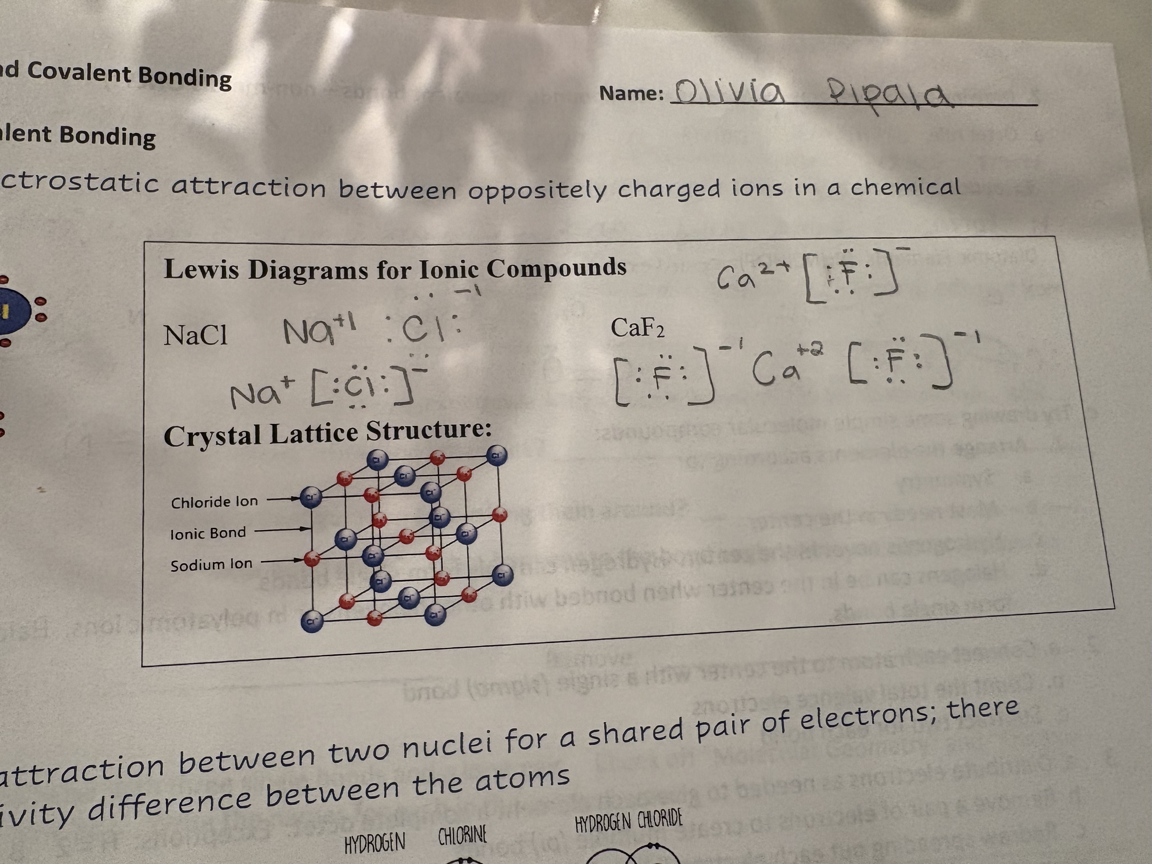 Electrostatic attraction between oppositely charged ions in a chemical compound