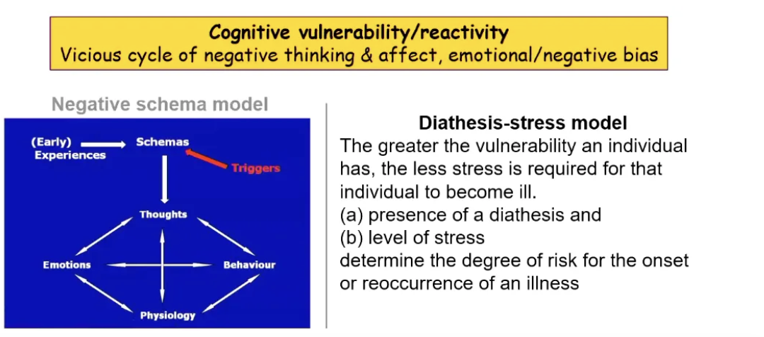 Cognitive - that individual predispositions (diathesis) interact with life experiences to trigger depressive states