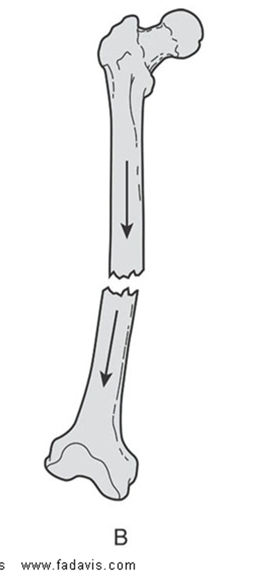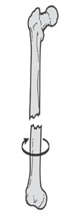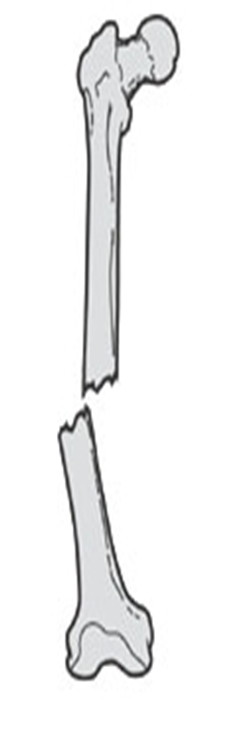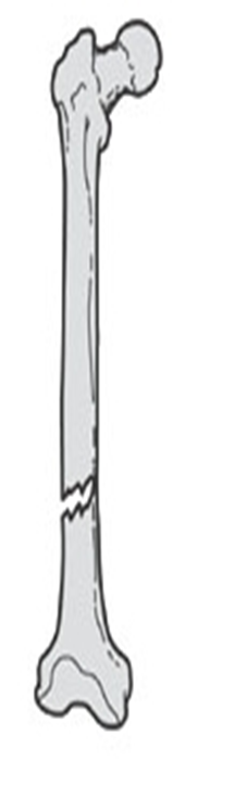describe in reference to longitudinal bone (transverse, longitudinal, oblique, spiral)