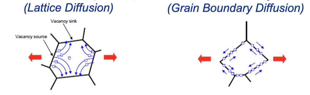 which creep occurs more rapidly, Coble (lattice) or Nabarro-Herring (grain boundary)?