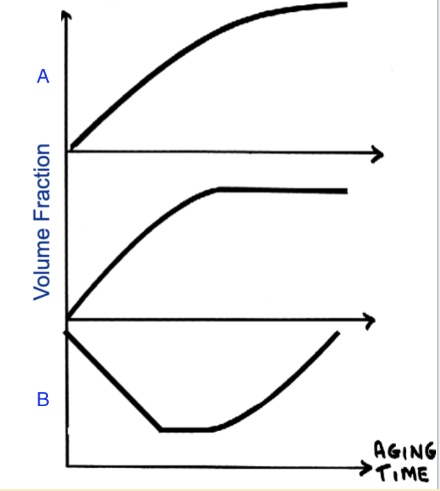 in precipitate hardening, identify the y axis for graphs A and B.
