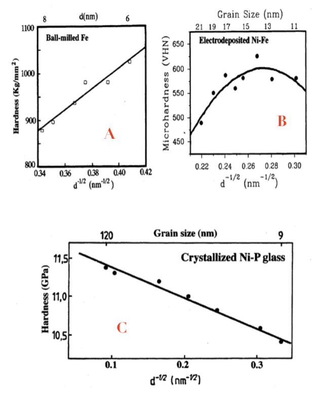 Does the Hall-Petch relation work for these nano-scale grains? Answer in order of A, B, C