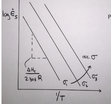 the fact that these lines are parallel means what in terms of the microstructure and mechanism? if these lines are non-linear, then the microstructure changes with ____ and/or _____, the creep mechanism changes, or ____ creep mechanisms operate