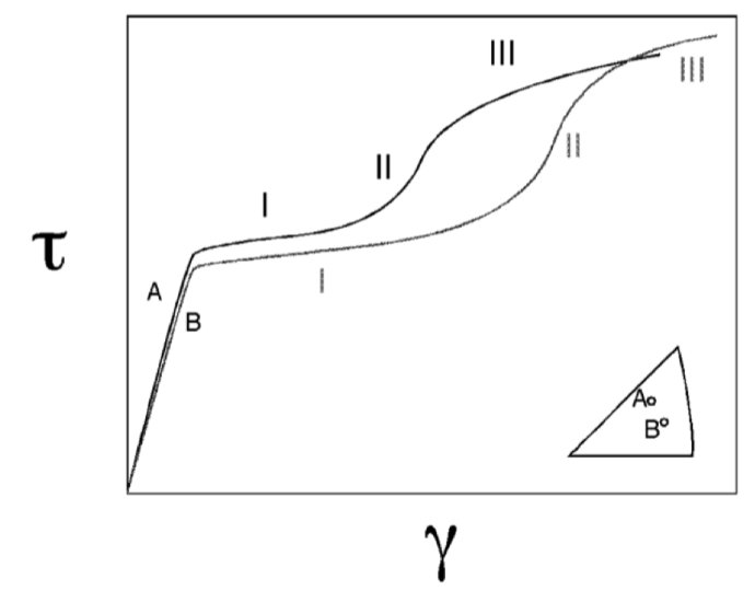 Parabolic hardening region, onset depends on ease of cross-slip and temperature, decreasing work hardening with increasing strain