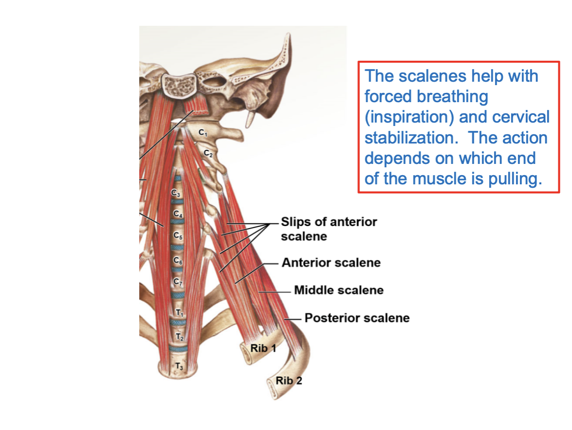depending on the context and what movement the body is creating, they can assist with forced inspiration. Or, they can help w stabilizing the cervical spine or laterally flexing it.