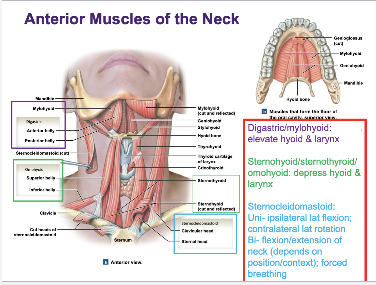 Bi - flexion/extension of neck (depends on position/context); forced breathing