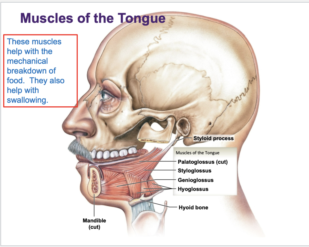 Stylohyoid: elevates and retracts the hyoid bone, elongating the floor of the mouth during swallowing.