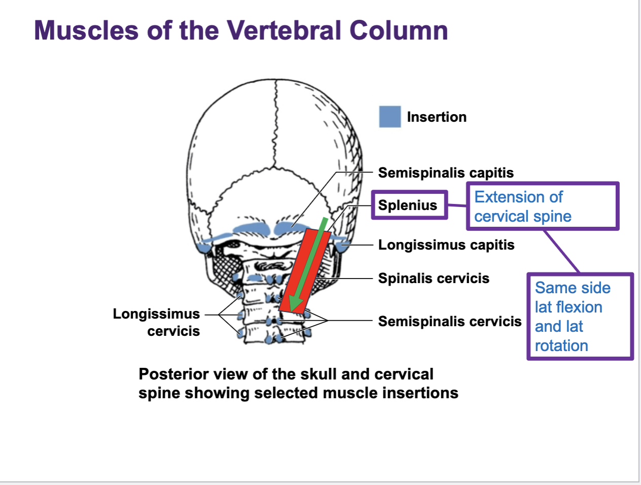 bilateral movements: extension of vertebral column (straightening the back); in practice, these muscles are actually working to reduce the movement of the spinal column