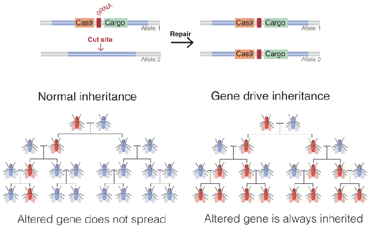 in this manner, the payload gene can be spread rapidly through the population, because of non Mendelian inheritance