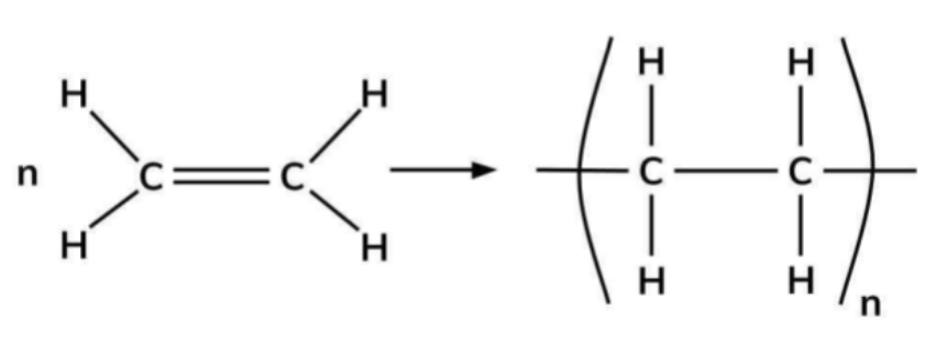 Addition polymers are produced from alkenes when the pi bond is broken to form a repeating unit.