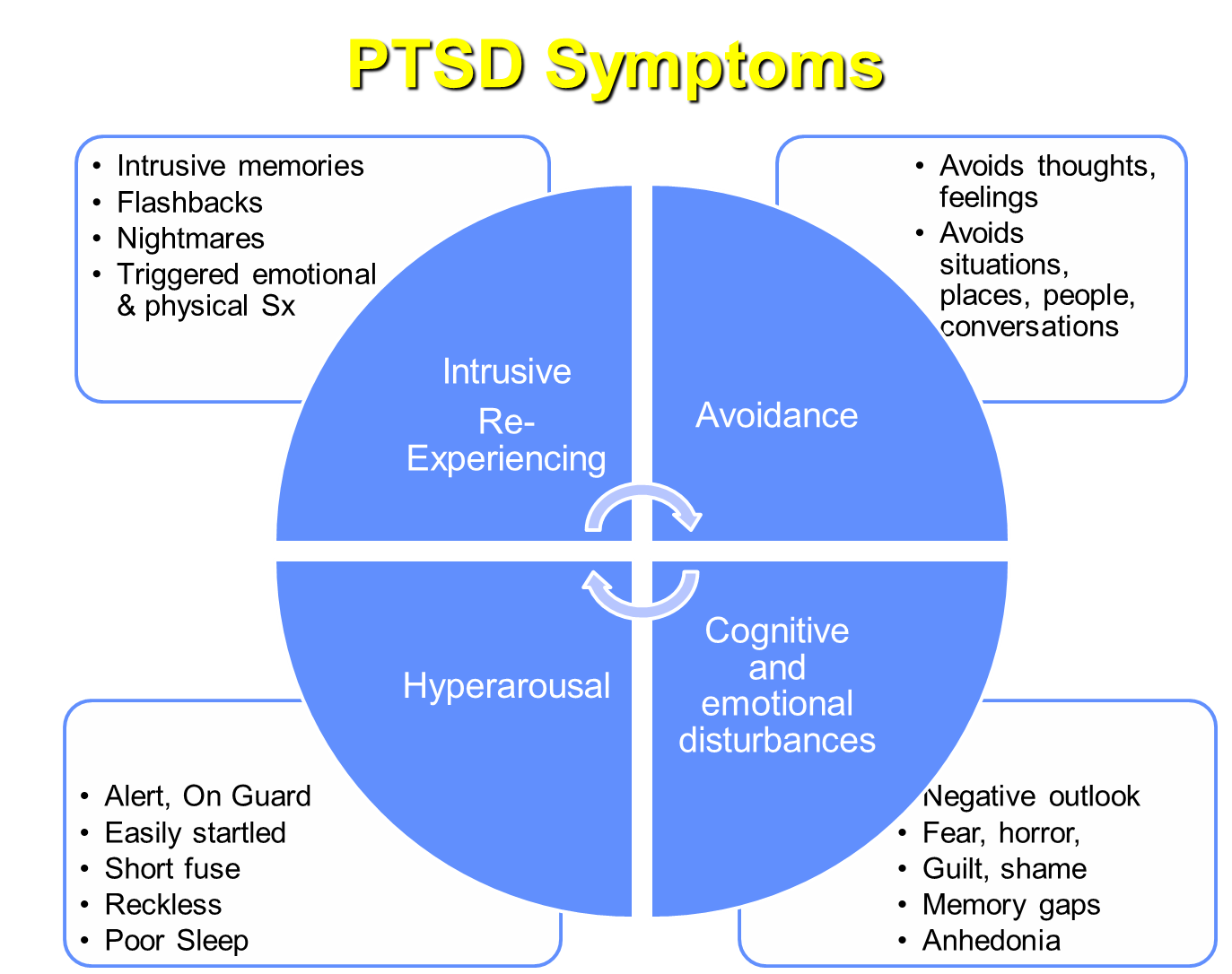 Following exposure to trauma such as serious injury or sexual violence, whether that’s experiencing, witnessing, or learning about it resulting in stress symptoms. These symptoms must last for longer than one month and cause significant distress/impairment