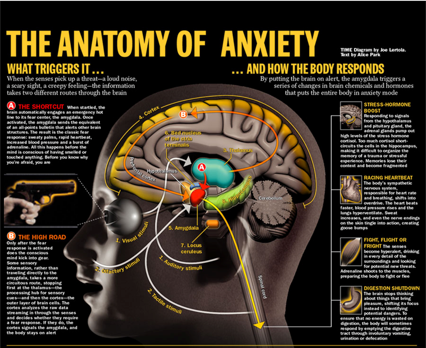 4) Amygdala is our emotional core and alarm center and is responsible for triggering our fear response