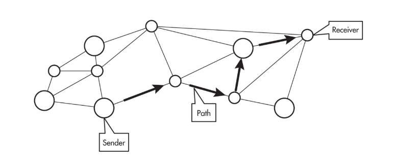 A path between two computing devices on a computer network (a sender and receiver) is a sequence of directly connected computing devices that begins at the sender and ends at the receiver.