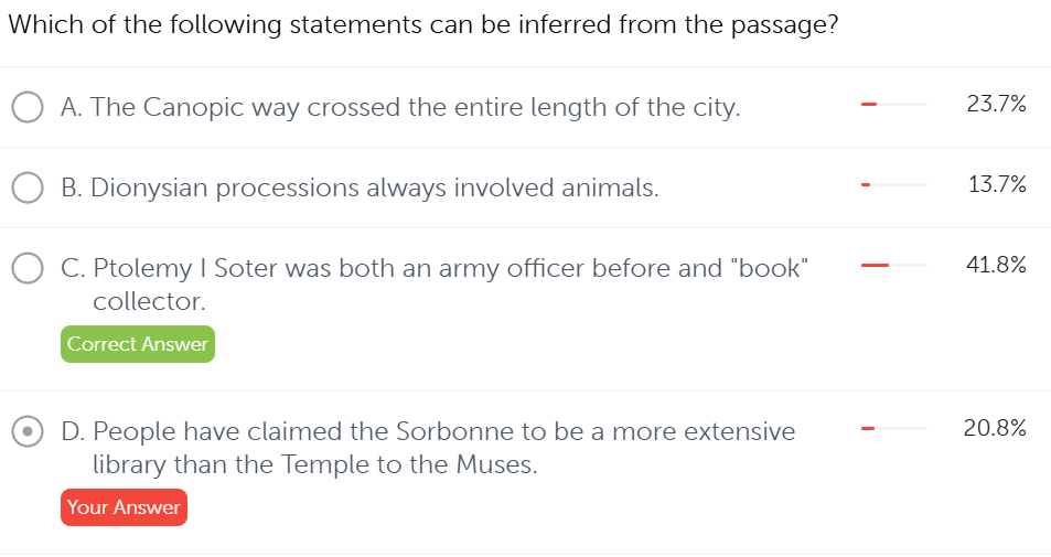For this question, I chose D, because ‘The largest medival Europenan library with as many…‘. However, this does not mean it is the largest library. As this sentence only mentions medival European library.
