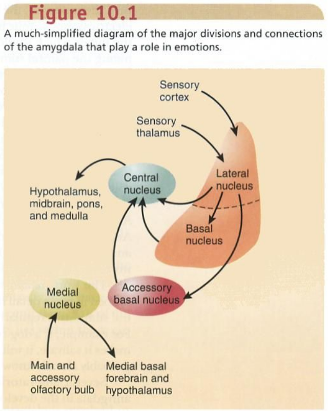 In short: the amygdala is a hub linking sensory input, memory, and physiological output systems.