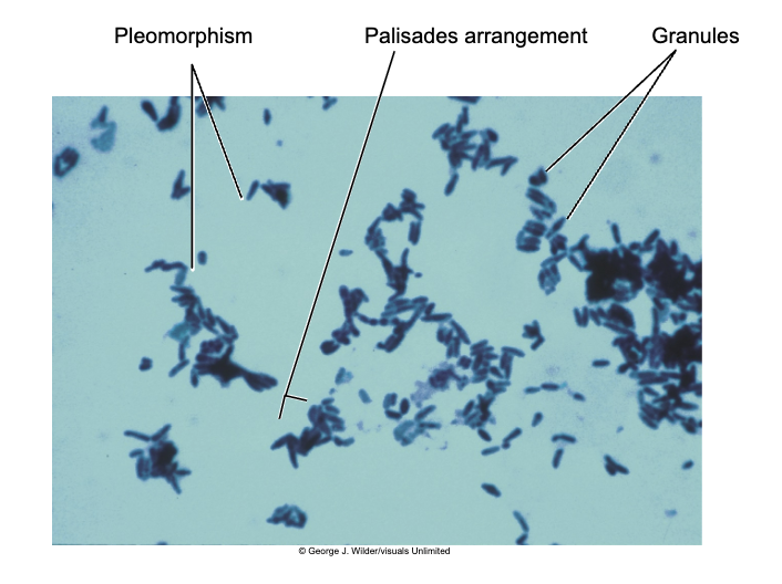 irregular shaped and staining properties: actinomyces, nocardia, corynebacterium