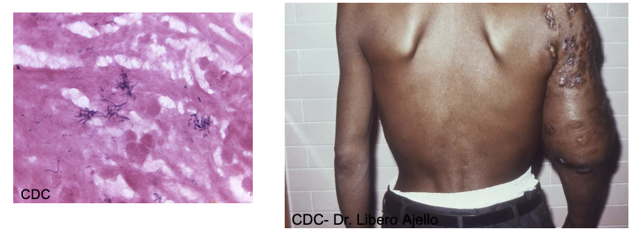 N. asteroids - mycetoma, slow destructive infection of tissue and bone