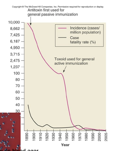 prevented by toxoid vaccine series and boosters
